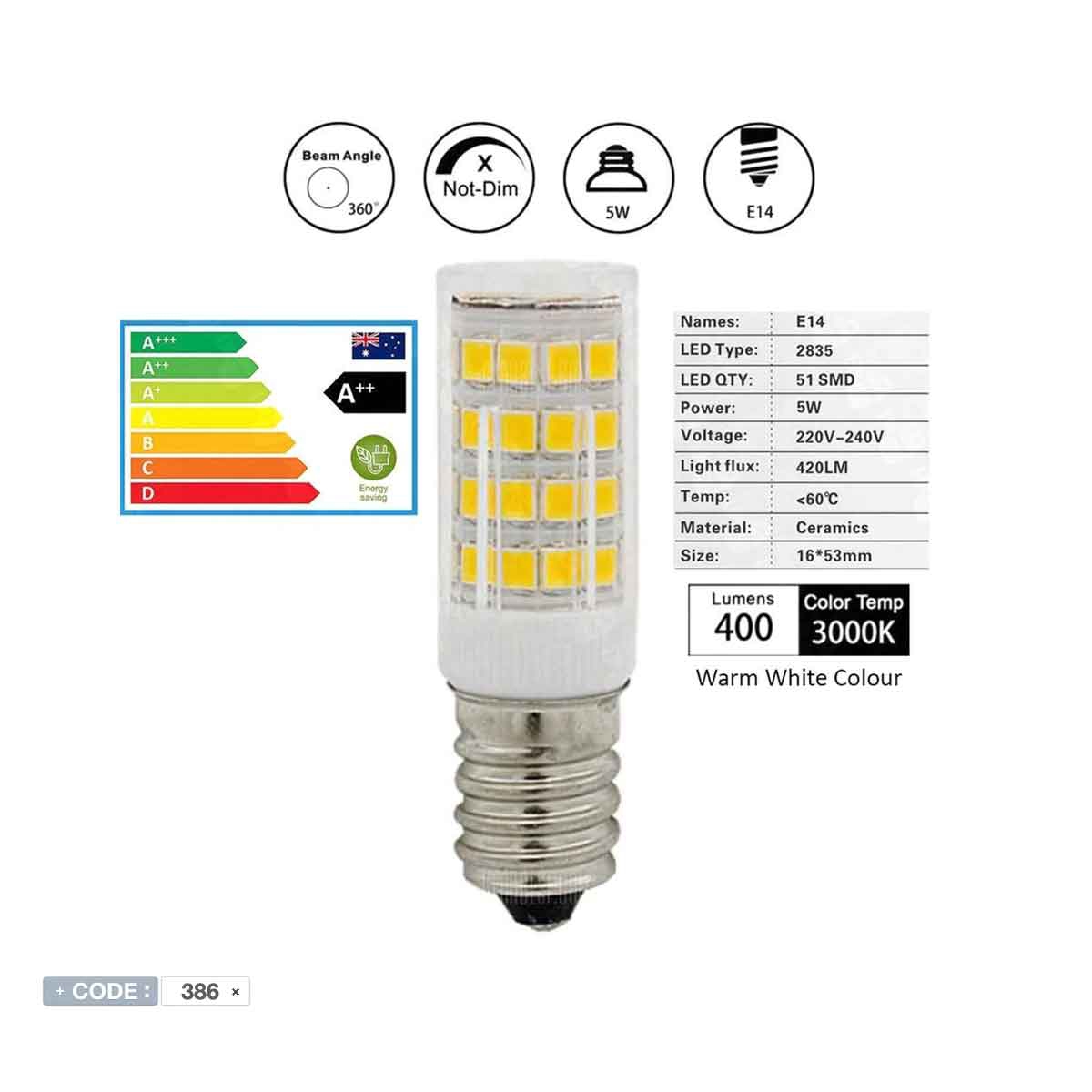 - نوع پایه: E14 (شمعی، قطر 14 میلیمتر)