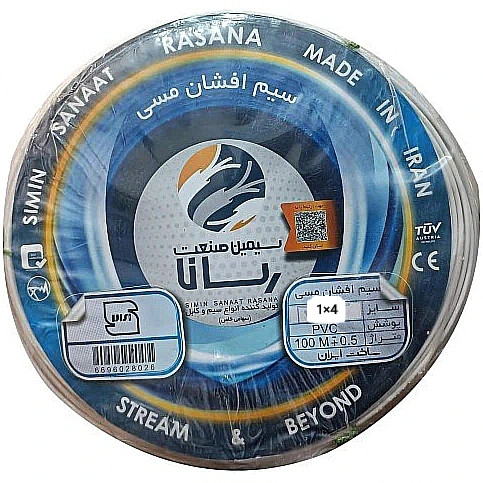 سیم افشان ۴×۱ توکار سیمین صنعت رسانا دارای هادی مسی کلاس ۵، عایق PVC، ولتاژ اسمی ۷۵۰/۴۵۰ ولت و متراژ ۱۰۰ متر است. این سیم برای نصب توکار در ساختمانها مناسب بوده و انعطافپذیری بالایی دارد.