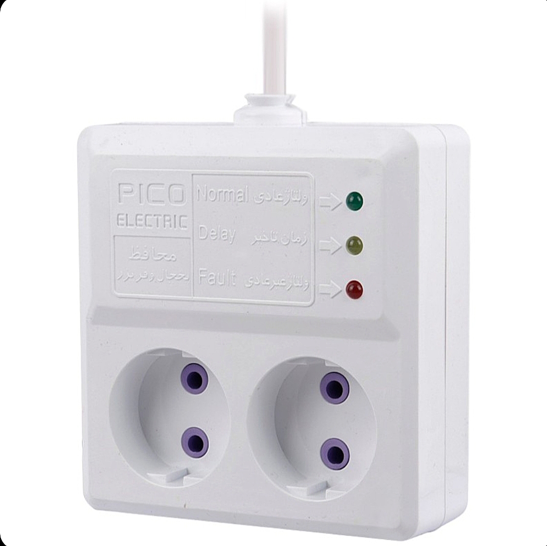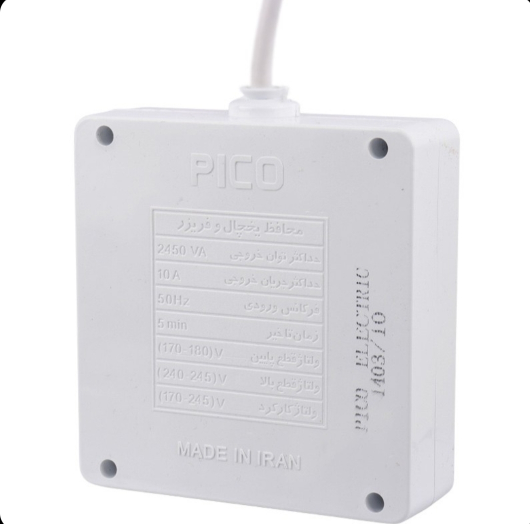محافظ برق یخچال و فریزر پیکو یک دستگاه ایمنساز ولتاژ است که برای محافظت از یخچال و فریزر در برابر نوسانات برق طراحی شده و معمولاً دارای دو خروجی، کابل بلند، و چراغهای نشانگر وضعیت است.